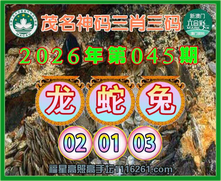 045期:《茂名神码》 😍三肖三码😍【龙兔】【02.01.03】开:蛇01